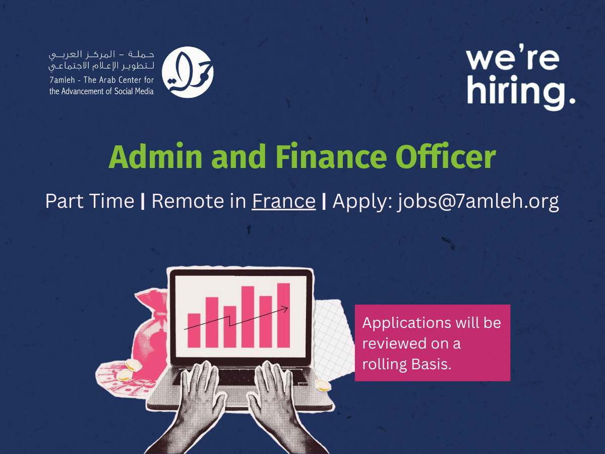 For inquiries, email jobs@7amleh.org with the subject line “Questions about Admin and Finance Role.” We will do our best to respond, subject to volume of inquiries.