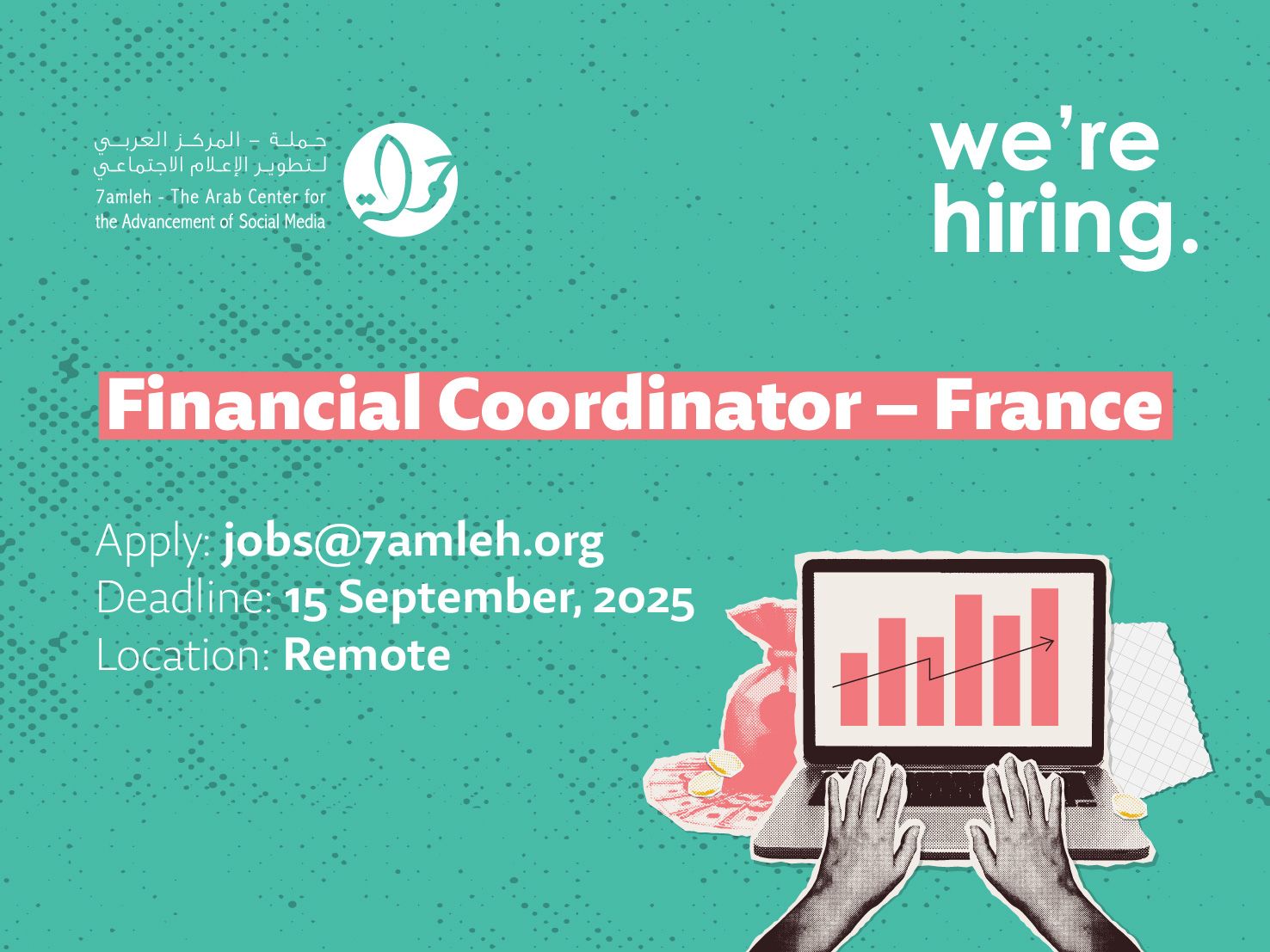For inquiries, email jobs@7amleh.org with the subject line “Questions about Financial Coordinator Role.” We will do our best to respond, subject to volume of inquiries.