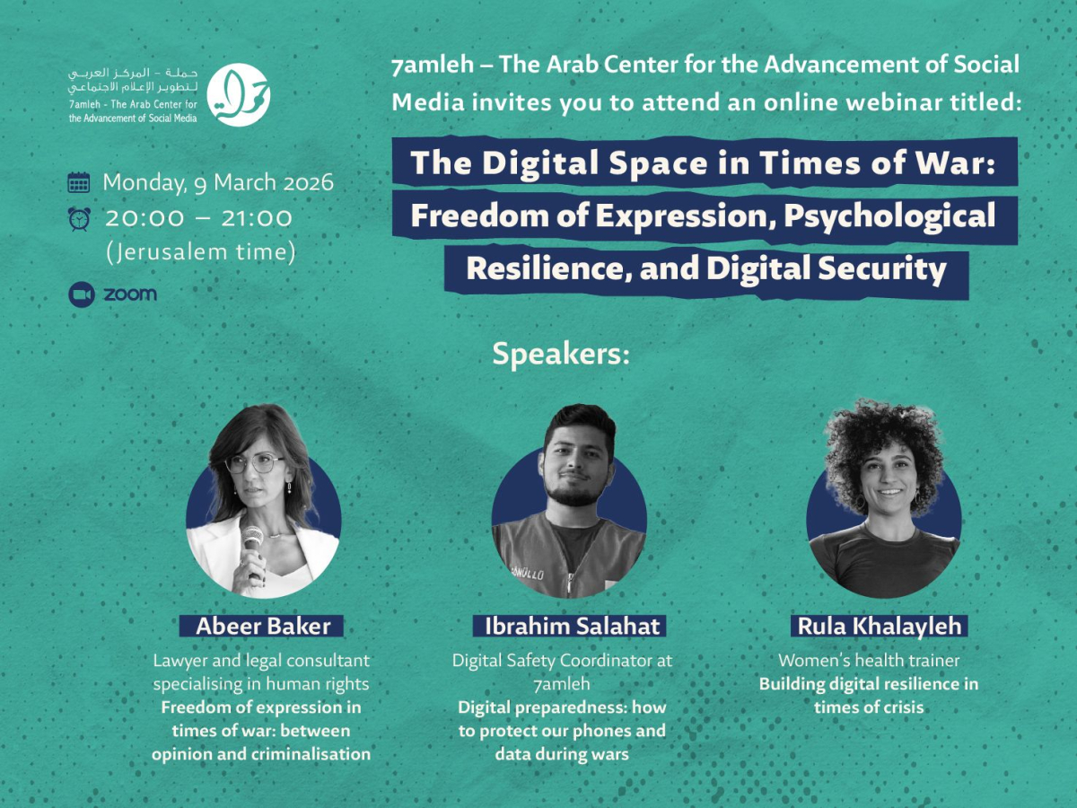 7amleh – The Arab Center for the Advancement of Social Media invites you to attend an online webinar titled:
